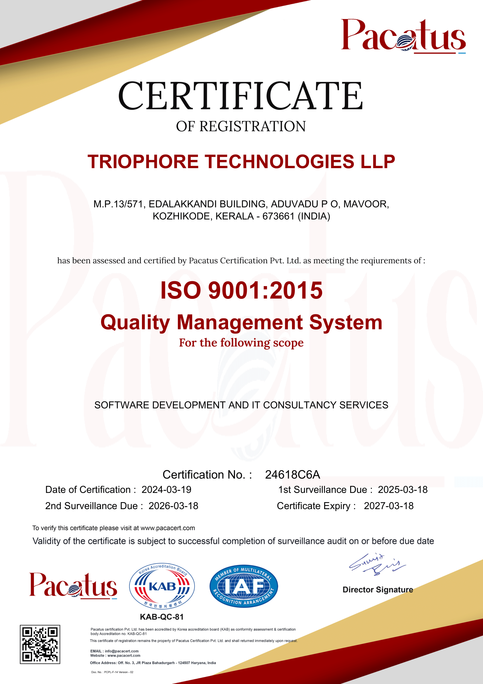 Triophore Technologies is a versatile multi-technology company offering solutions in the fields of Cloud Apps, Machine Learning, Blockchain, Embedded Systems, and IoT. Our aim is to bring in integrated high-end technology to bring in the new digital renaissance and have a dedicated R&D backed by our parent, National Institute of Technology Calicut. We are built on the strength of our workers filled with passion to deliver the best in the world.